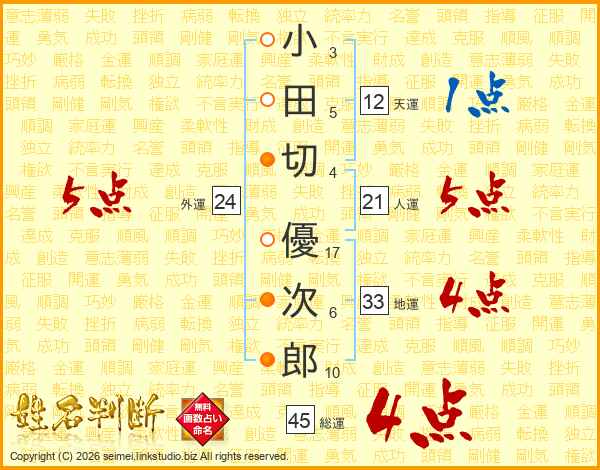 小田切優次郎さんの総運は45画の4点!