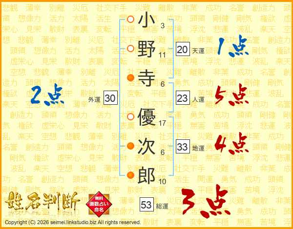 小野寺優次郎さんの総運は53画の3点!