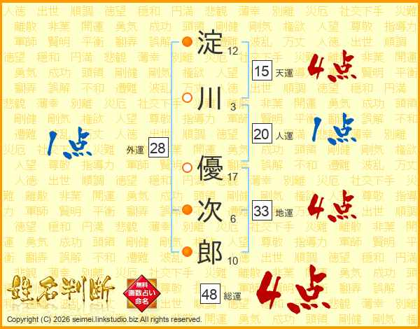 淀川優次郎さんの総運は48画の4点!