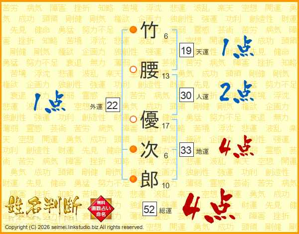 竹腰優次郎さんの総運は52画の4点!