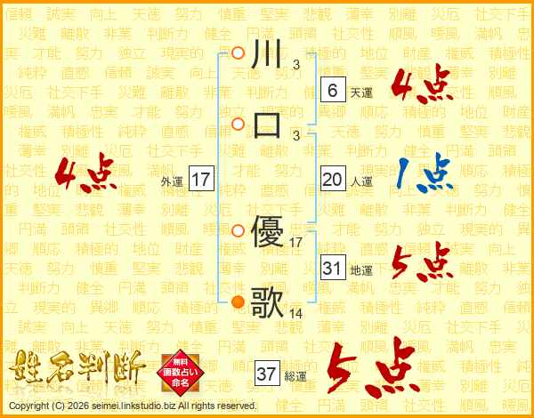 川口優歌さんの外運は17画の4点!