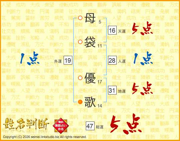 母袋優歌さんの総運は47画の5点!