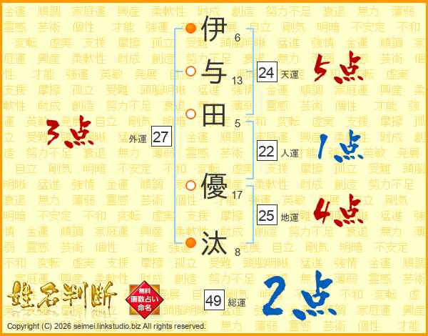 伊与田優汰さんの天運は24画の5点!