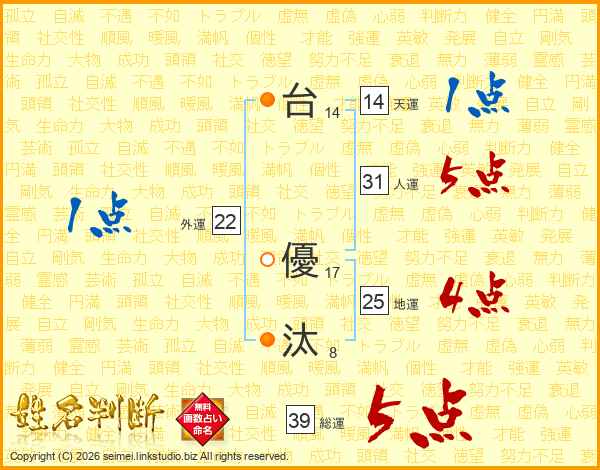 台優汰さんの総運は39画の5点!