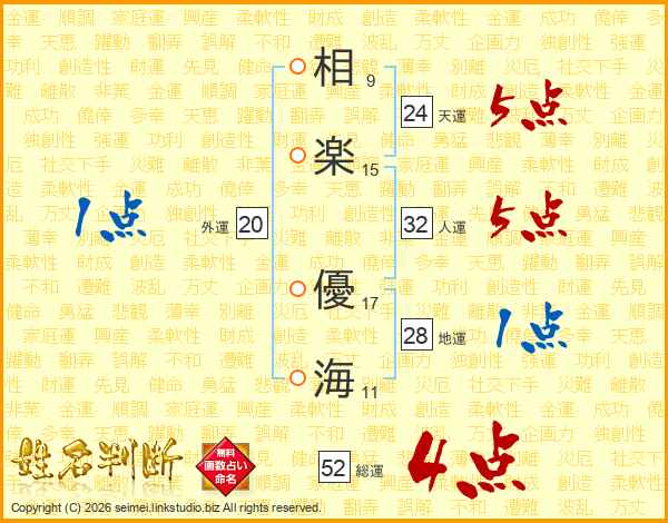相楽優海さんの総運は52画の4点!