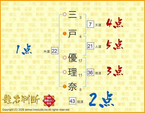三戸優理奈さんの総運は43画の2点!