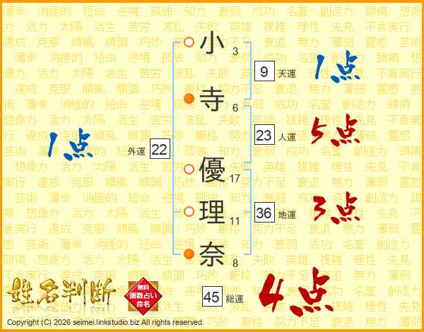 小寺優理奈さんの総運は45画の4点!