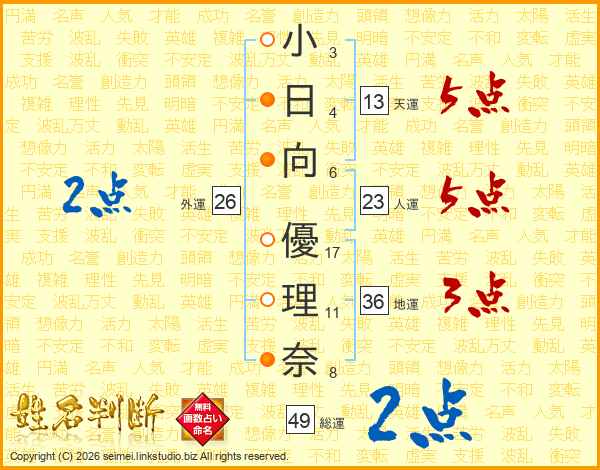 小日向優理奈さんの外運は26画の2点!