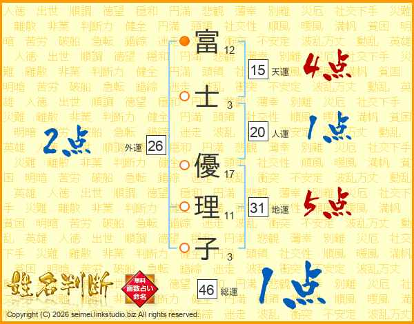 富士優理子さんの総運は46画の1点!
