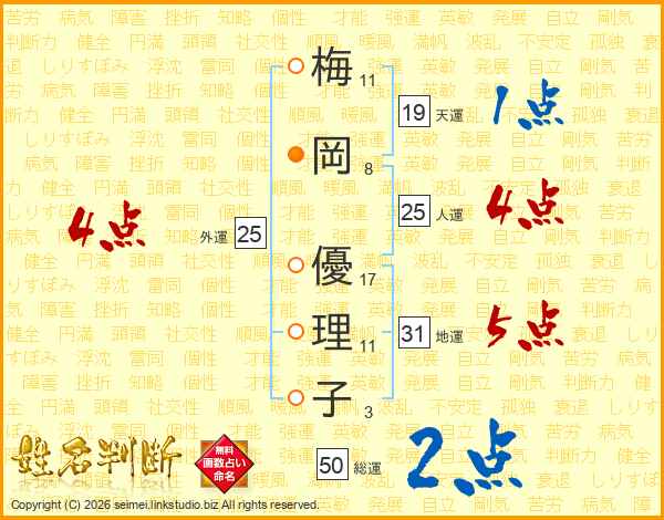 梅岡優理子さんの人運は25画の4点!