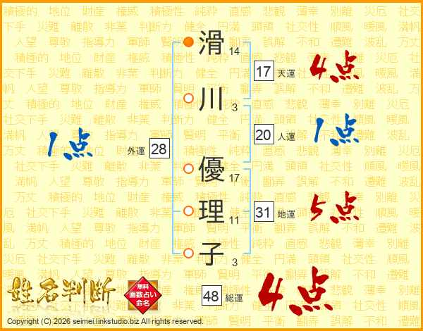 滑川優理子さんの総運は48画の4点!