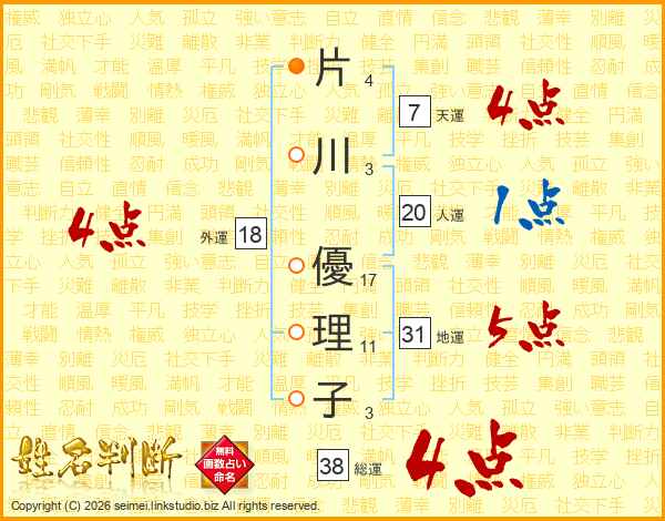 片川優理子さんの総運は38画の4点!