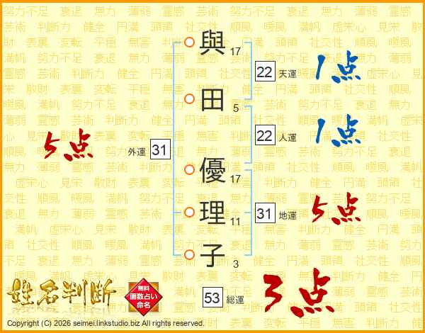與田優理子さんの地運は31画の5点!