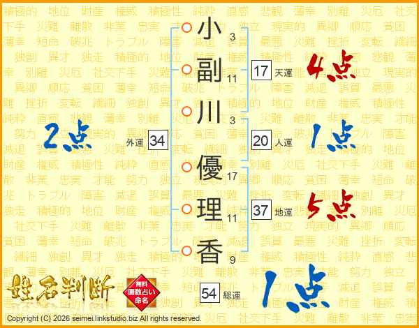 小副川優理香さんの天運は17画の4点!