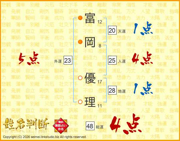 富岡優理さんの人運は25画の4点!