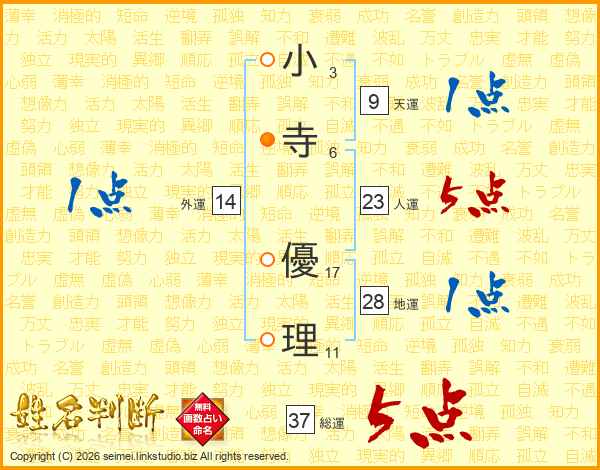 小寺優理さんの総運は37画の5点!