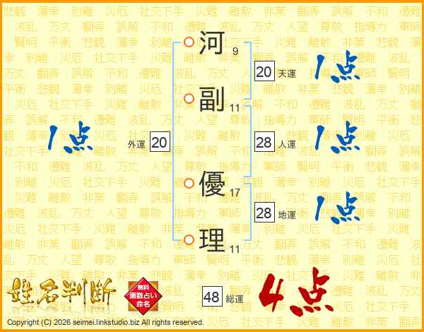 河副優理さんの地運は28画の1点!