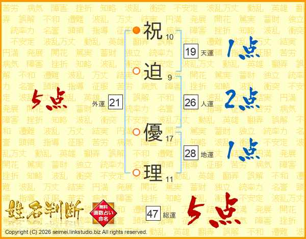 祝迫優理さんの総運は47画の5点!