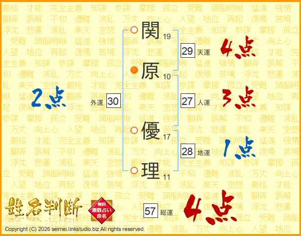 関原優理さんの総運は57画の4点!