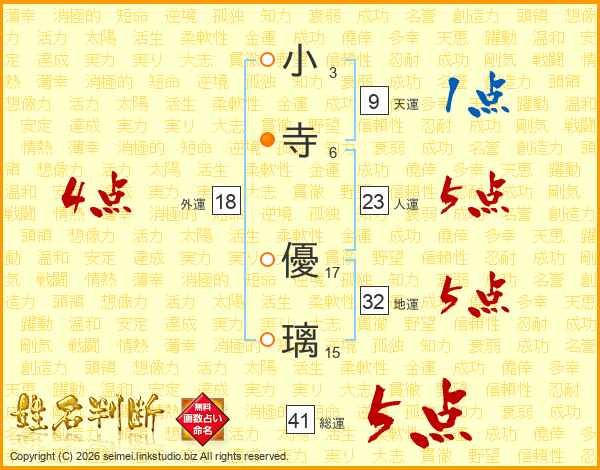 小寺優璃さんの総運は41画の5点!