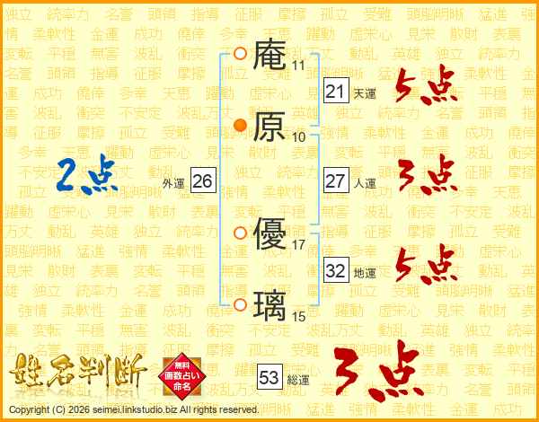 庵原優璃さんの総運は53画の3点!