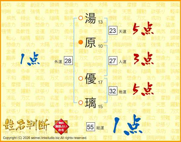 湯原優璃さんの天運は23画の5点!