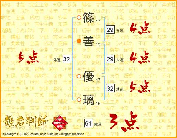 篠善優璃さんの外運は32画の5点!