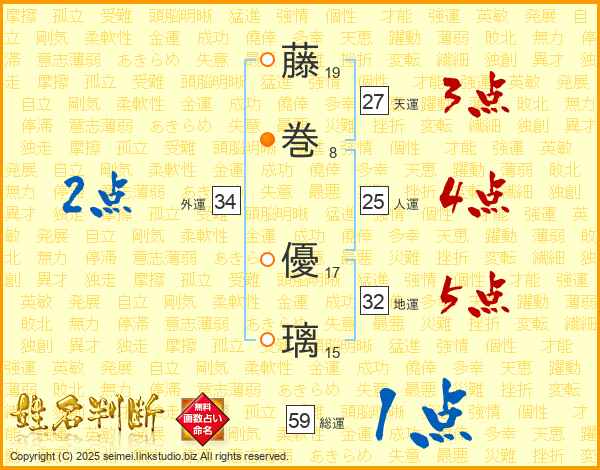 藤巻優璃さんの総運は59画の1点!