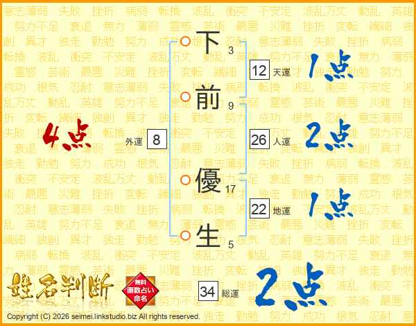 下前優生さんの人運は26画の2点!
