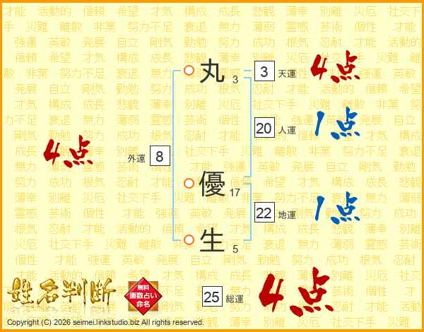 丸優生さんの総運は25画の4点!