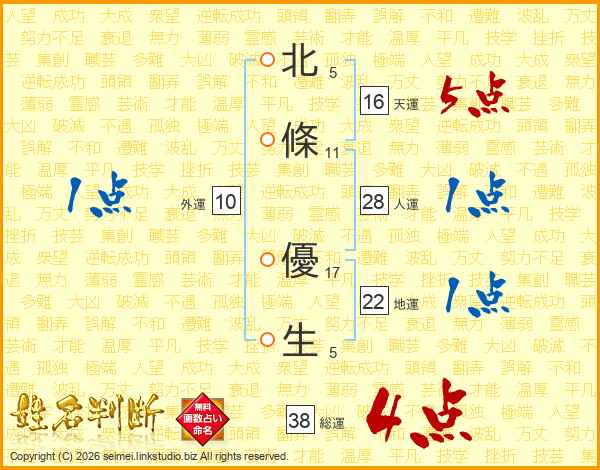 北條優生さんの総運は38画の4点!