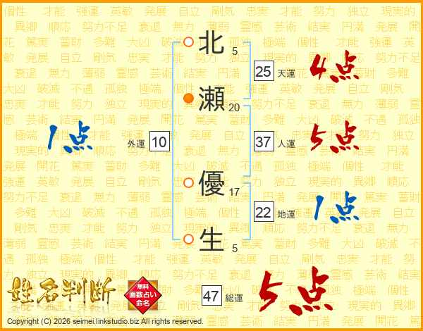 北瀬優生さんの天運は25画の4点!