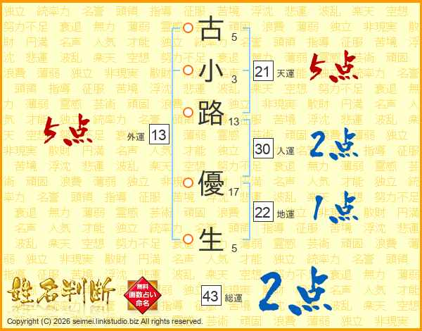 古小路優生さんの天運は21画の5点!