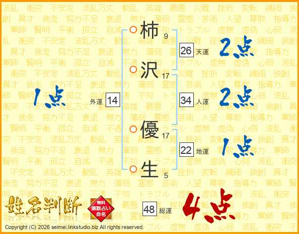 柿沢優生さんの総運は48画の4点!