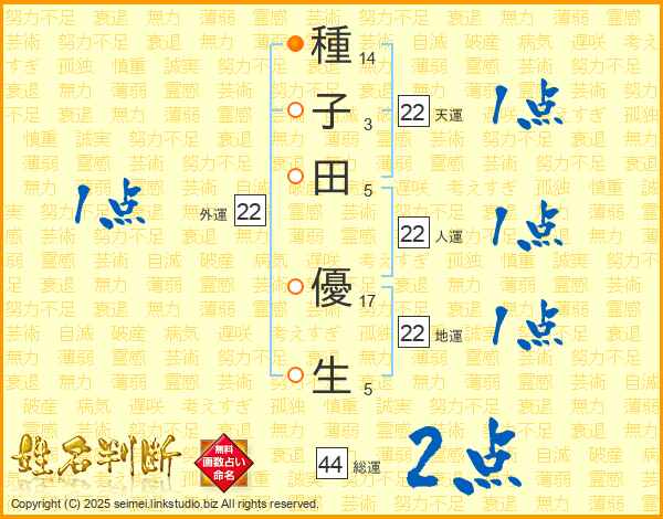 種子田優生さんの人運は22画の1点!