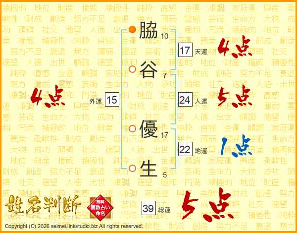 脇谷優生さんの天運は17画の4点!