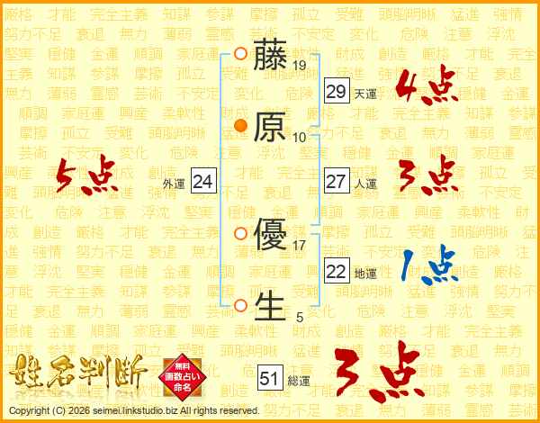 藤原優生さんの外運は24画の5点!