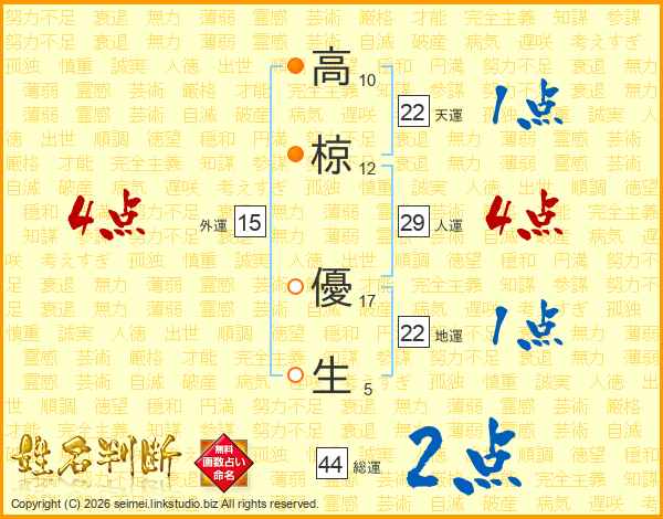 高椋優生さんの天運は22画の1点!