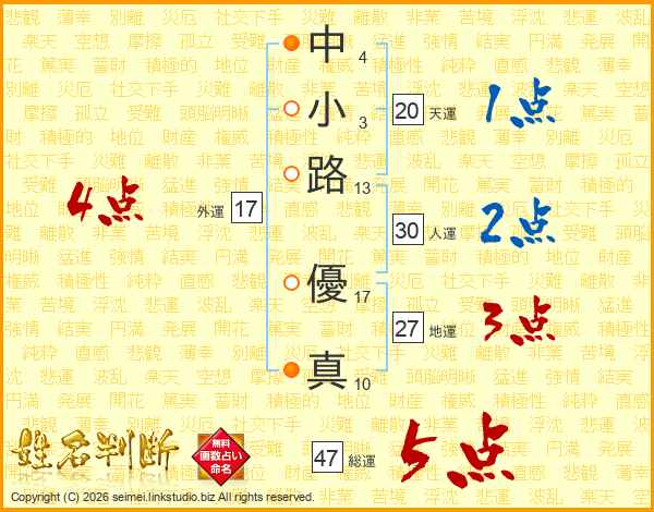 中小路優真さんの総運は47画の5点!