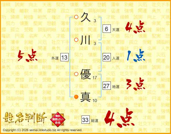 久川優真さんの総運は33画の4点!