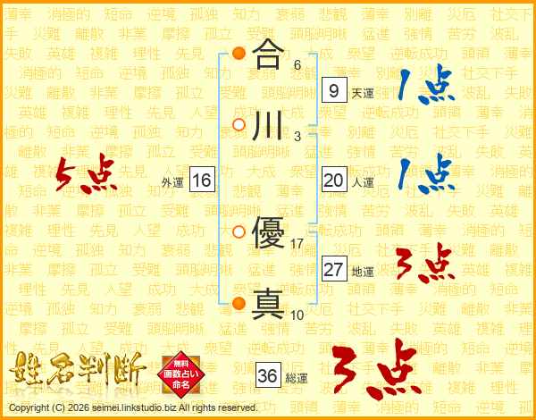 合川優真さんの外運は16画の5点!