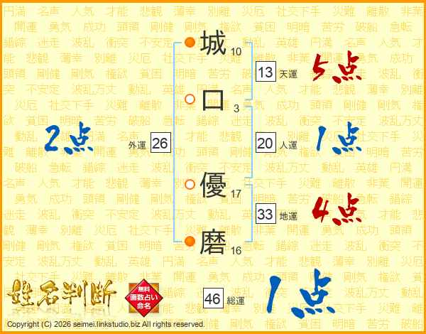城口優磨さんの天運は13画の5点!