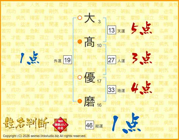 大髙優磨さんの総運は46画の1点!
