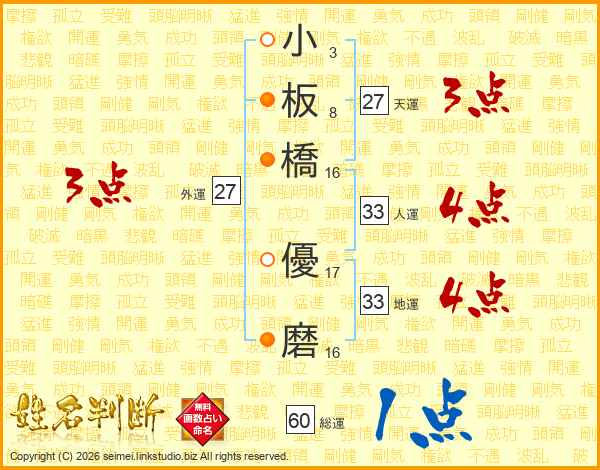 小板橋優磨さんの地運は33画の4点!