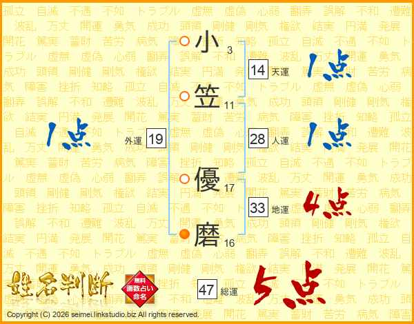 小笠優磨さんの総運は47画の5点!