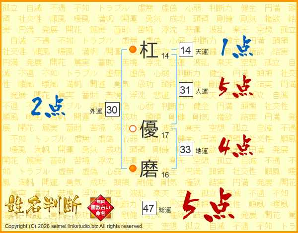 杠優磨さんの総運は47画の5点!