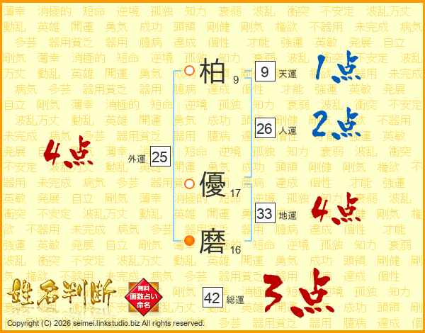 柏(9画) 優(17画)磨(16画)