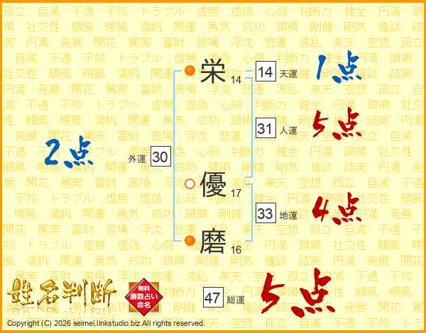 栄優磨さんの総運は47画の5点!