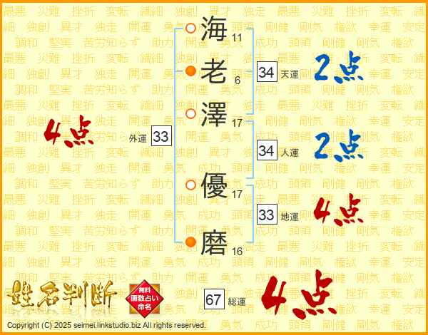 海老澤優磨さんの天運は34画の2点!