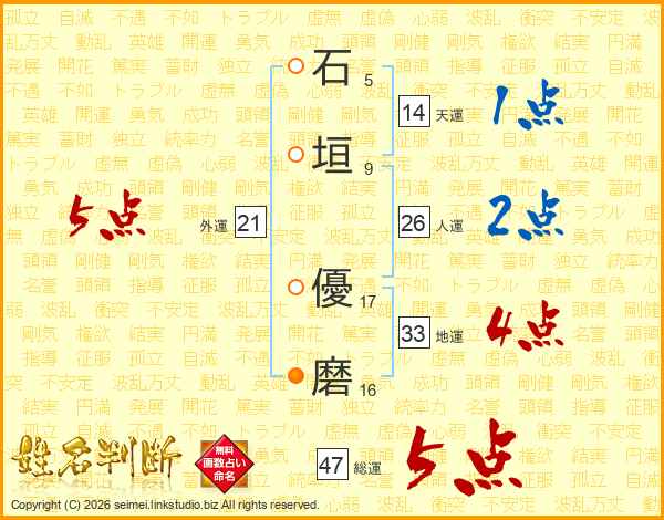石垣優磨さんの総運は47画の5点!